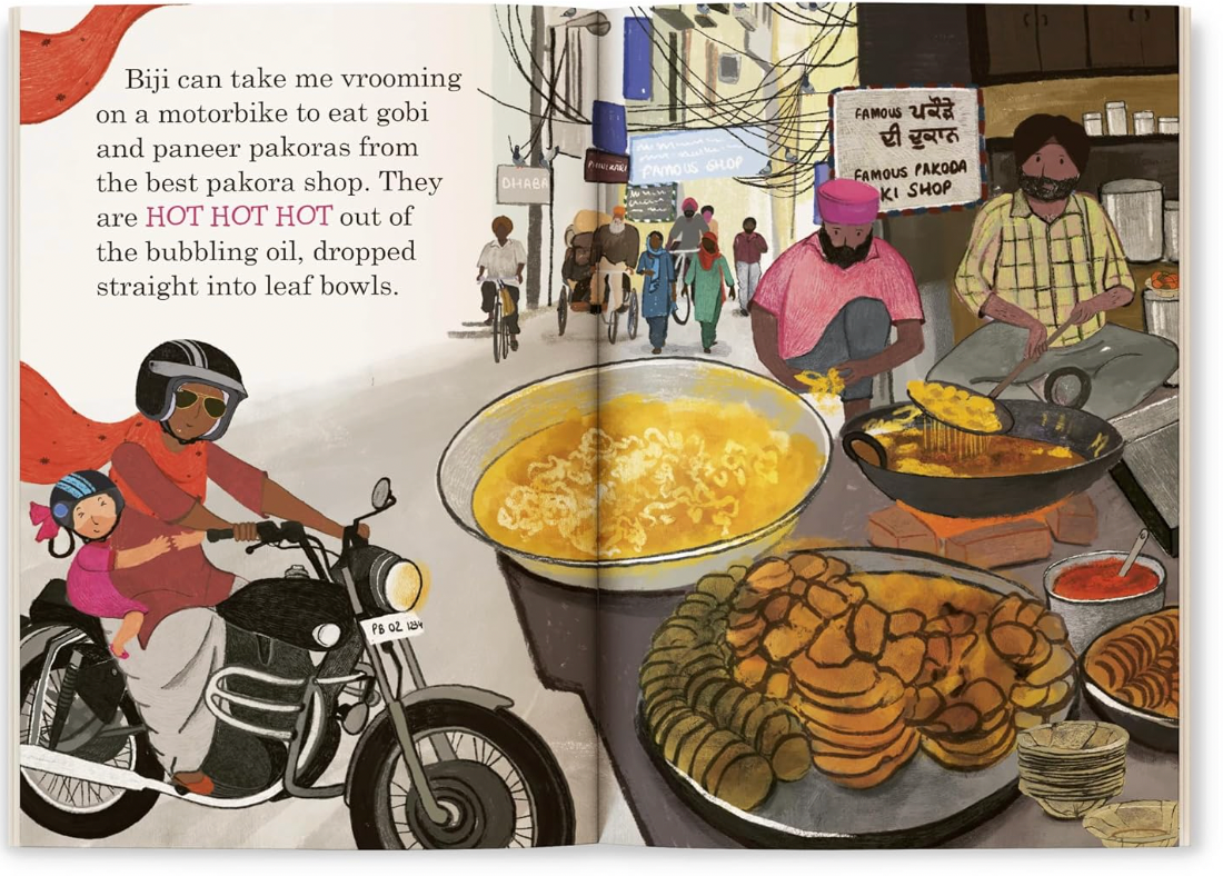 Slimy bhindi curry, anyone? Biji is freestyle and fun. But when she is in the kitchen, everyone, beware!